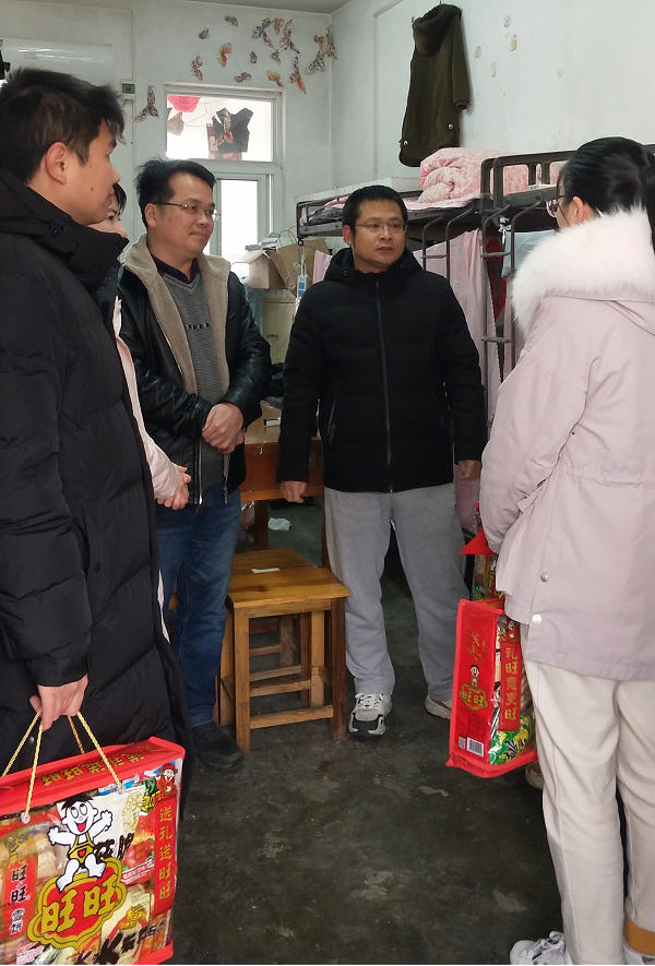 为进一步了解我院寒假留校学生情况,关心关怀学生,1月25日上午,学院党委书记黄万华,党委副书记、纪委书记韦东带领专职辅导员看望因家乡疫情暂时无法返乡的4名留宿学生。