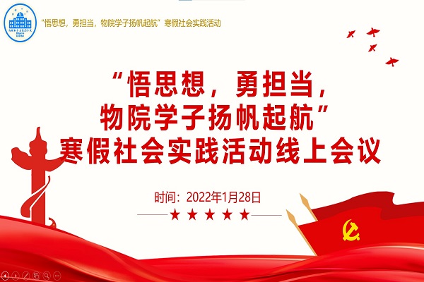 为响应团中央和学校关于寒假社会实践的号召,增进物院学子对寒假社会实践活动的理解,激励物院学子踊跃参与社会实践活动,1月28日,胜游体育(SYsports)官方网站入口与技术学院召开“悟思想,勇担当,物理学子扬帆起航”寒假社会实践主题活动推进会。