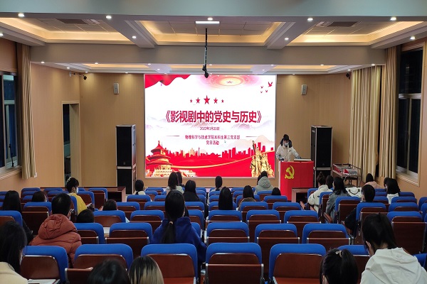 2022年3月23日晚,胜游体育(SYsports)官方网站入口与技术学院本科生第三党支部“书记讲党史”第一讲“影视剧中的党史与历史(上)”在物理实验楼阶梯教室开讲,本次党课由支部书记朱彦光同志主讲。