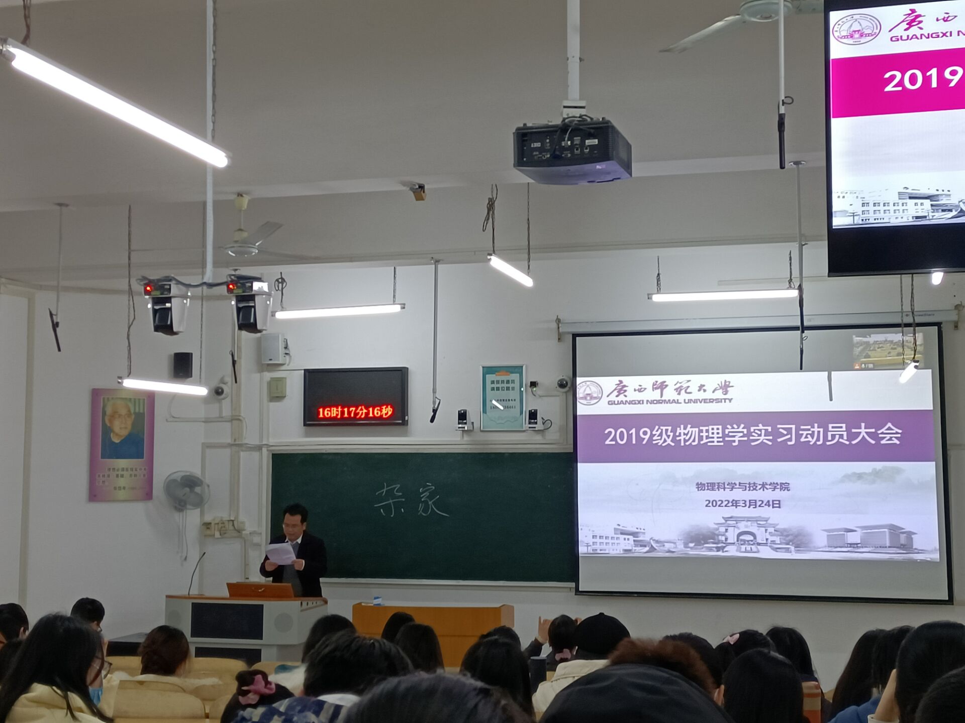 为进一步做好我院师范生实习工作,引导学生做好实习前各项准备,推进实习工作的顺利开展,3月24日,我院在理科楼203教室召开了2019级物理学专业教育实习动员大会。我院党委主要负责人黄万华老师、副院长孙小军老师,辅导员、教学秘书及实习带队老师出席本次会议。