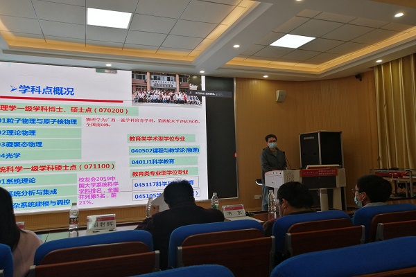 胡君辉副院长基于学院的基本情况向同学们讲解学院学科点概况、学科团队情况和专业设置,介绍了研究生招生政策与奖助学金政策。他建议,一是对于非常热门的学科教学类专业,同学们应报考更有把握的学校,院校目标早决定,早准备,贵在持之以恒;二是要高度重视复试准备,理解基本概念原理。三是要夯实自身专业学科基础,公共课和专业课既要两手抓,又要突出重点。