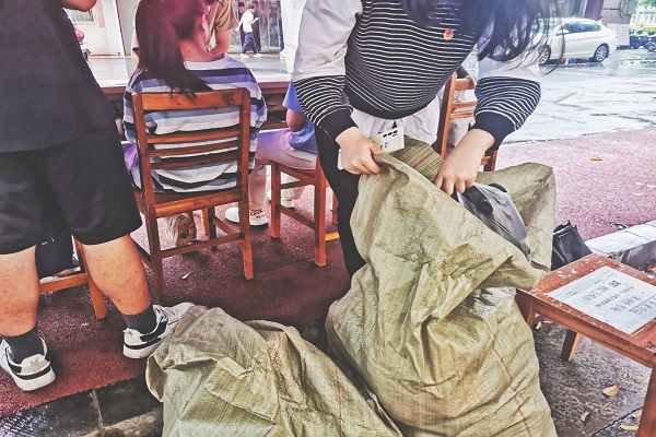 活动中,大家热情高涨地拿来旧衣,有的是自备小袋子装了几件一起捐,有的捐出了几乎全新的套装,还有的发动同宿舍同学一起来捐。助理们认真仔细地登记每一位捐赠者的信息,并报以感激的微笑。同学们捐赠的衣物装满了一个个大袋子,有捐赠者甚至问组织者要袋子到宿舍去装衣物,但是大袋子不够用,他只能分两次把衣服拿来,一个人就捐赠了十几件旧衣。有一些没有事先了解活动的同学,在看到现场的捐赠时主动前来了解活动,随后就立即到宿舍找出旧衣捐赠。