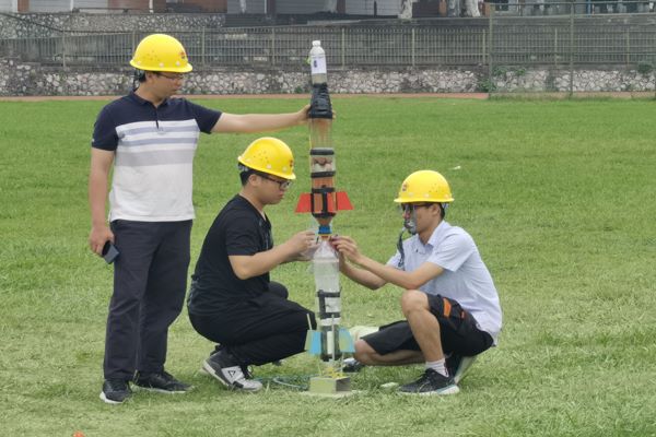 喜迎二十大,永远跟党走,物院学子以水火箭升空形式庆祝“五四”青年节的到来,寓意广大青年在党的领导下永远向上,永远朝气蓬勃。前期,选手们分组制作水火箭,现场气氛紧张而有序。在大田径场,师生们共同观看水火箭表演,二级分离火箭和多级助推火箭,展示了多个极具科学技术内涵的表演项目和水火箭比赛项目的缩影,鲜红的横幅在半空中展开,“喜迎二十大,永远跟党走,奋进新征程”的标语鼓舞人心,在场师生欢欣鼓舞,胸中激荡赤诚奋斗的热血。