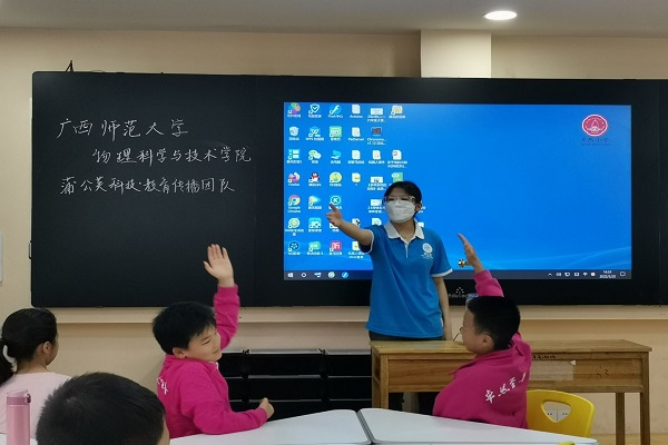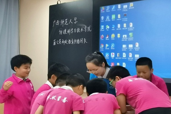 科普人员与学生进行互动