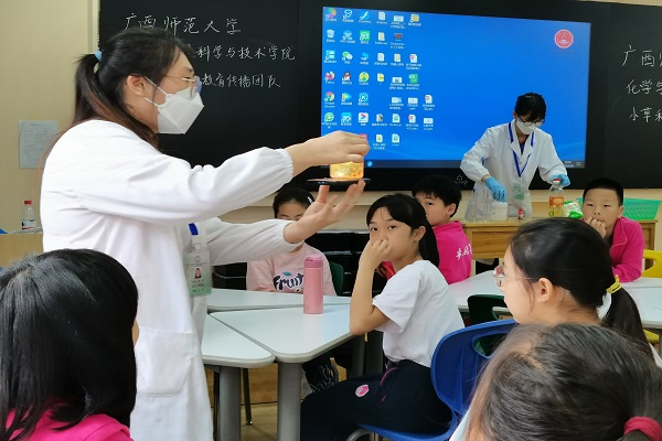 本次科普的对象为卓然小学五年级的学生。科普选题分别为“神奇的水流”、“穿墙而过”、“熔岩灯”、“变色的紫甘蓝”。