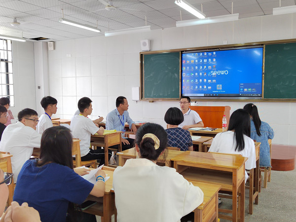 带队教师赵明、陈海深与来宾一中物理组和实习生们进行了深入交流,来宾一中的指导教师们也围绕课程的目标达成、方法有效和效果体现等内容,对实习生的教学情况进行了全面评价,为具体的教学实践提供了指导性意见和建设性建议。