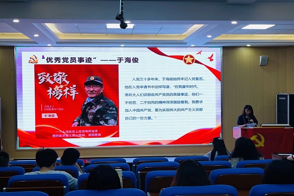 首先,多位党员代表向同志们分享关于李夏、周永开和于海俊三位全国优秀共产党员的光荣事迹,在听取了三位优秀共产党员的事迹后,同志们纷纷表示要向优秀党员同志看齐,进一步提升境界、深入学习贯彻习近平新时代中国特色社会主义思想,做出表率,做到时时刻刻不忘初心,在日常学习、工作和生活中牢记党员身份,充分发挥党员先锋模范作用。之后,在支部书记的带领下,学生党员们面对党旗重温入党誓词,面对鲜红的党旗,学生党员们更加坚定了全心全意为人民服务、为共产主义奋斗终身的决心,在生活和学习工作中,亮身份、做表率,争做一名合格、优秀的共产党员。