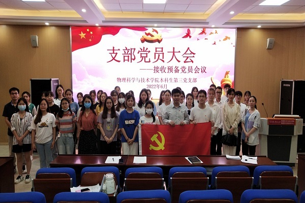 2022年6月14日晚,胜游体育(SYsports)官方网站入口与技术学院本科生第三党支部于物理实验楼阶梯教室召开预备党员接收大会暨开展“影视剧中的党史与历史(中)”党课学习。本次会议到场人数共47人,包括41名党员同志和6名发展对象。