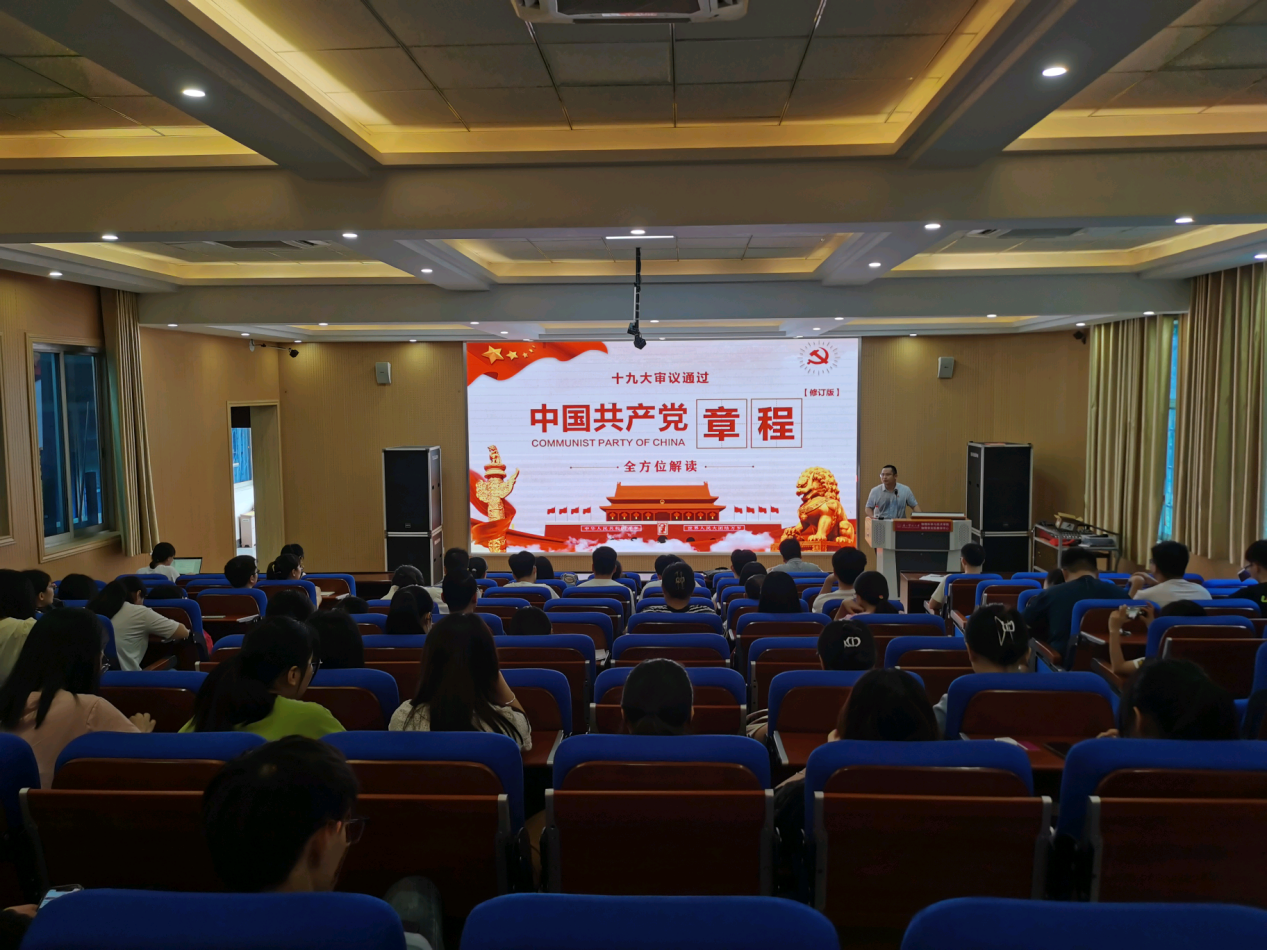会上,学院党委相关负责人为同学们全方位解读了十九大通过的《中国共产党章程(修正案)》,他主要从中国共产党章程的总纲和章程两大部分展开,全面分析了十九大党章的新变化、新特点,强调了党章对解决现实重大问题、对实现全党政治、思想、组织上的统一和行动的高度的一致具有重大意义,并结合生动案例,指出新形势下党章对党员干部的新要求。党章作为党的全国代表大会制定的根本法规,有最高的权威性,是立党之本、行动之规、对照之境、执纪之尺,是护党之宝。