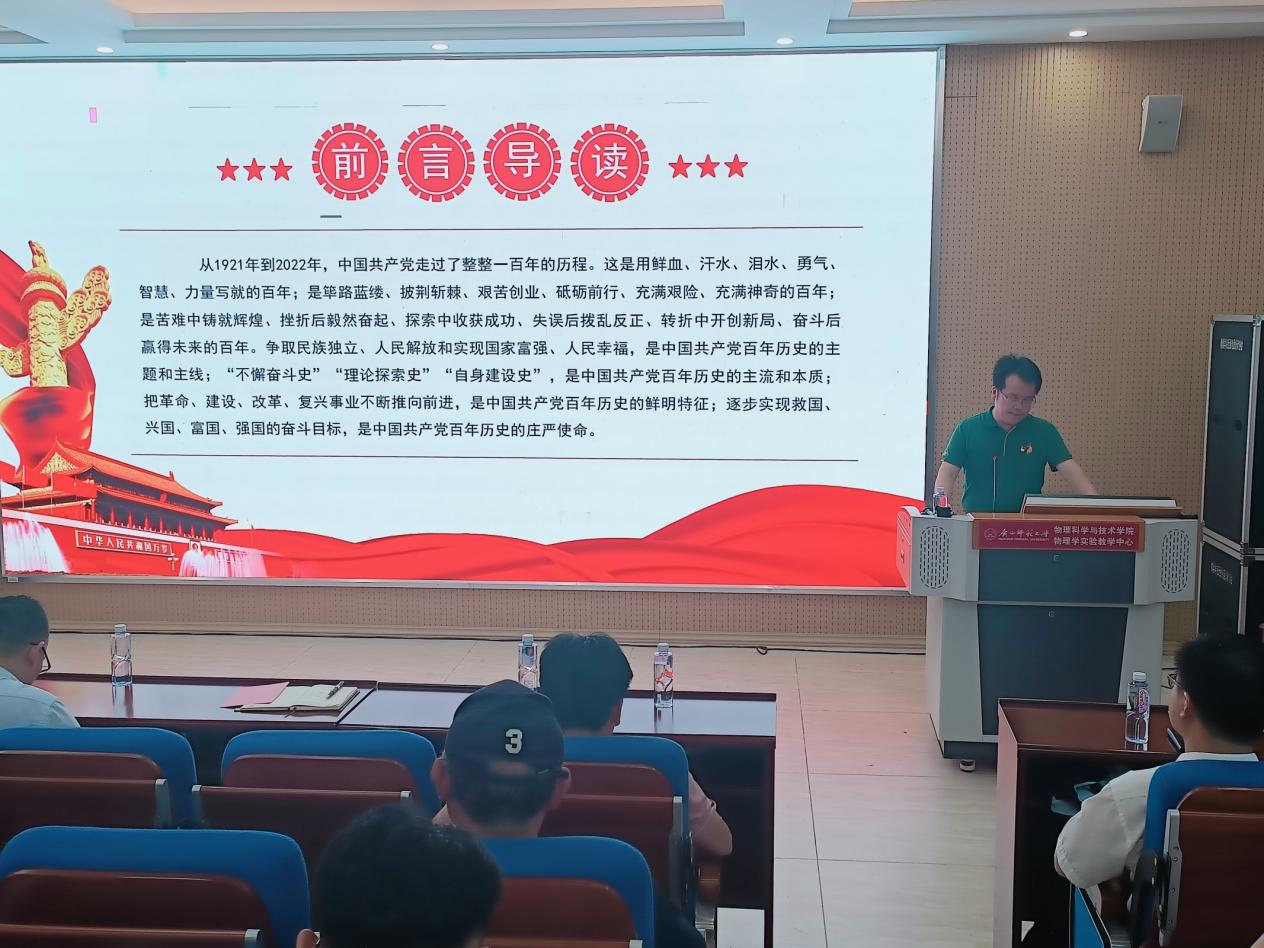 百年征程波澜壮阔,百年初心历久弥坚。为庆祝中国共产党成立101周年,激发我院全体党员感恩奋进,勇毅前行的活力,坚定不移的理想信念,7月1日,胜游体育(SYsports)官方网站入口与技术学院在实验楼阶梯教室开展了“庆祝中国共产党成立101周年”主题活动。学院党委主要负责人、党委相关负责人及师生党支部书记及全体师生党员参加了此次活动。活动由研究生第三党支部书记柳莲君主持。