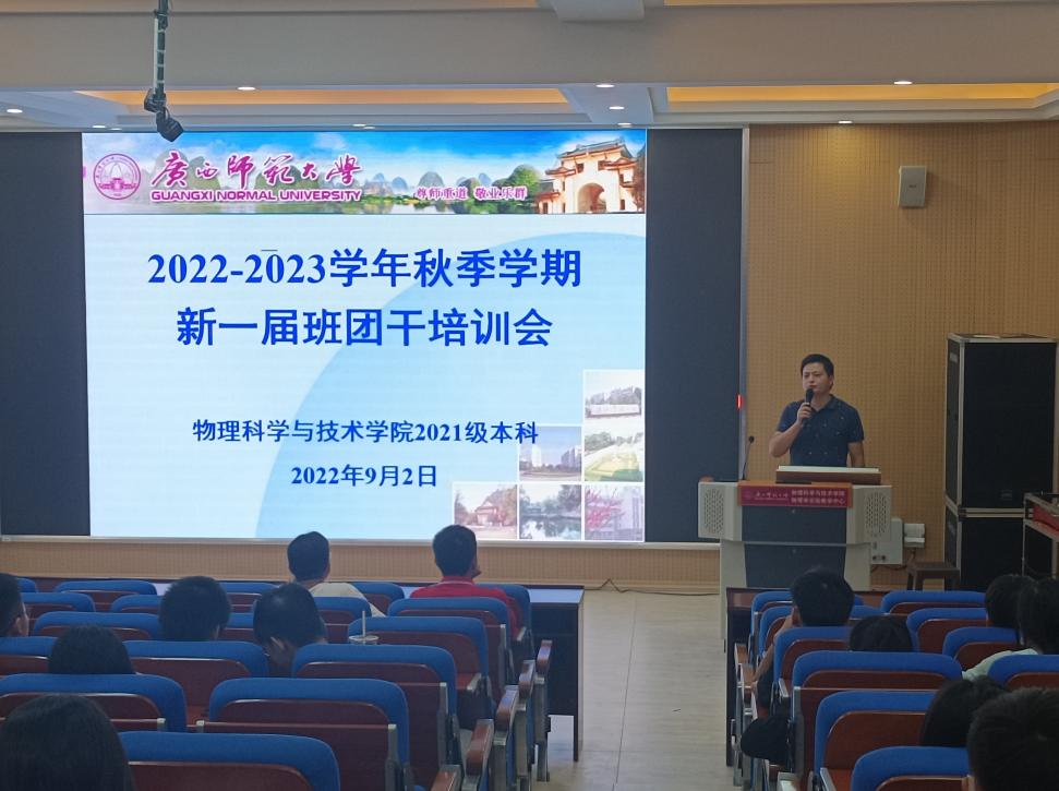 9月2日,为进一步加强班级凝聚力,深化班团一体化建设,提高新一届班团干综合素养,胜游体育(SYsports)官方网站入口与技术学院在物理实验楼阶梯教室组织2021级本科班团干培训会,此次培训会由2021级年级辅导员主持,学院2021级全体班团干、宿舍长参加会议。