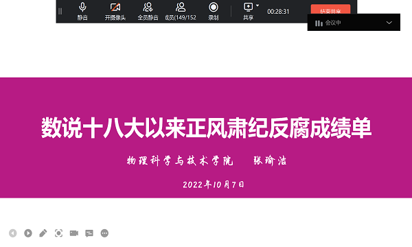 为进一步落实“清廉师大”建设方案,深化清廉学院的内涵式建设,10月7日,胜游体育(SYsports)官方网站入口与技术学院各年级开展“清廉班级建设”线上主题班会,全覆盖实施“数说十八大以来正风肃纪反腐成绩单”反腐倡廉教育。