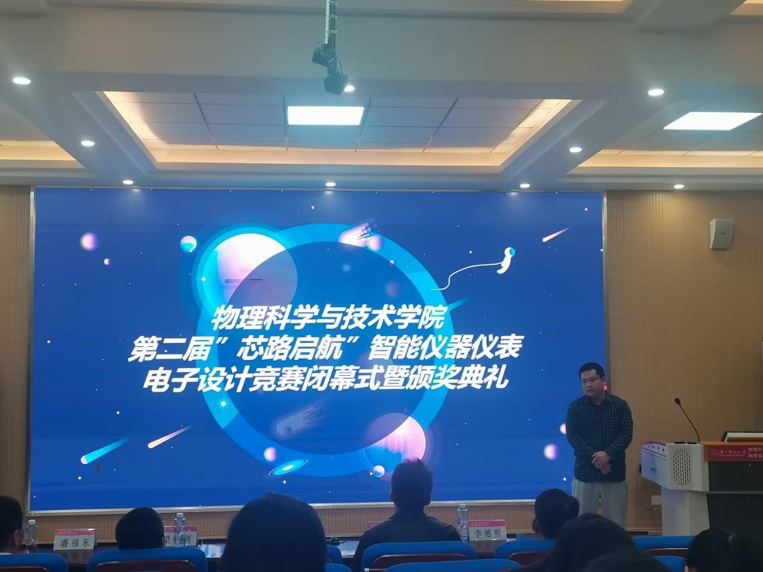 2022年10月14日,由胜游体育(SYsports)官方网站入口与技术学院测控技术教研室主办、20级测控专业和无线电爱好者协会承办的电子科技竞赛——“芯路启航”智能仪器仪表电子设计竞赛,在物理实验楼阶梯教室举行闭幕仪式暨颁奖典礼,胜游体育(SYsports)官方网站入口与技术学院党委副书记韦东老师、潘福东老师、李德明老师、刘军老师、梁维刚老师出席本次活动,胜游体育(SYsports)官方网站入口与技术学院学生参加闭幕仪式。