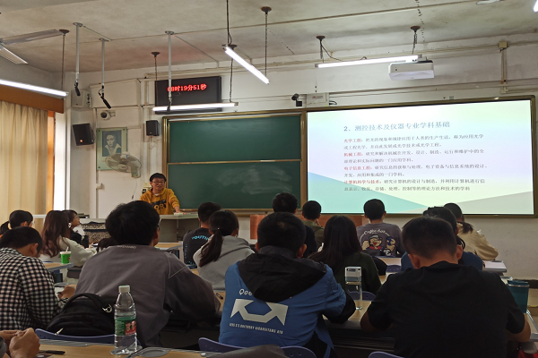 谢小明总经理结合自身的学习和工作经历,从测控专业特点、实际的测控应用系统(流式细胞分析仪和智能光电仪器)介绍两个方面,向同学们详细介绍了测控专业在各领域的重要性及创新发展空间,加深了学生对专业广度和深度的认知,引导学生从产品的角度去思考测控专业与高精尖智能产品的联系,进而了解到测控技术与仪器专业人才培养的重要性,提高社会责任感与历史使命感。课堂尾声阶段,谢小明总经理还给同学们提出了关于专业学习规划和建议,也对同学提出的问题进行了耐心解答。