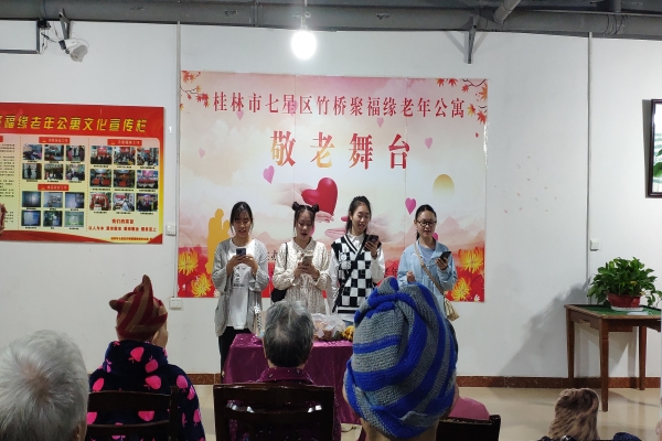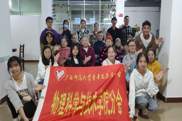 为使更多大学生践行尊老爱幼的传统美德,引导更多大学生关爱老人,同时为更好地践行雷锋精神,倡导“奉献、友爱、互助”的志愿精神,引导大学生践行社会主义核心价值观。2022年10月29日,广西师大青协物理分会于桂林市七星区聚福缘敬老院开展“心向二十大,温馨志愿行”敬老院活动。