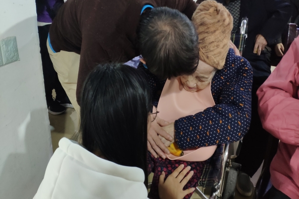 各位老人入座后,志愿者们给他们带来了动人的歌曲和幽默的笑话故事,一时间大厅中便充满了老人们的掌声与笑声。随后,志愿者们将准备好的礼物送到了老人们的手上,在此过程中,志愿者们陪伴着老人谈话聊天、给老人们锤肩按摩,驱赶着老人们的孤单。
