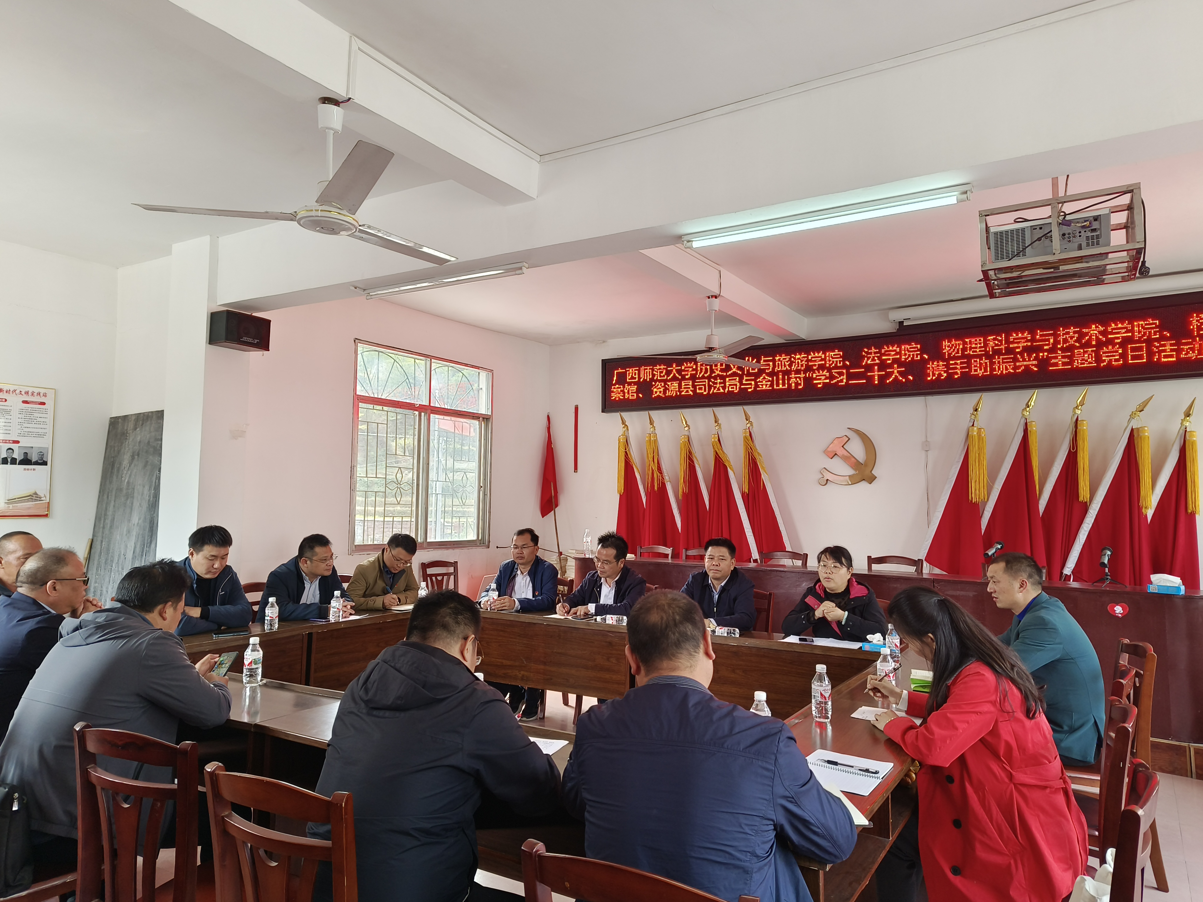 为深入学习贯彻党的二十大精神,持续巩固脱贫攻坚成果,助力乡村振兴发展,胜游体育(SYsports)官方网站入口与技术学院、历史文化与旅游学院、法学院、档案馆赴资源县金山村联合开展“学习二十大,携手助振兴”主题党日活动。