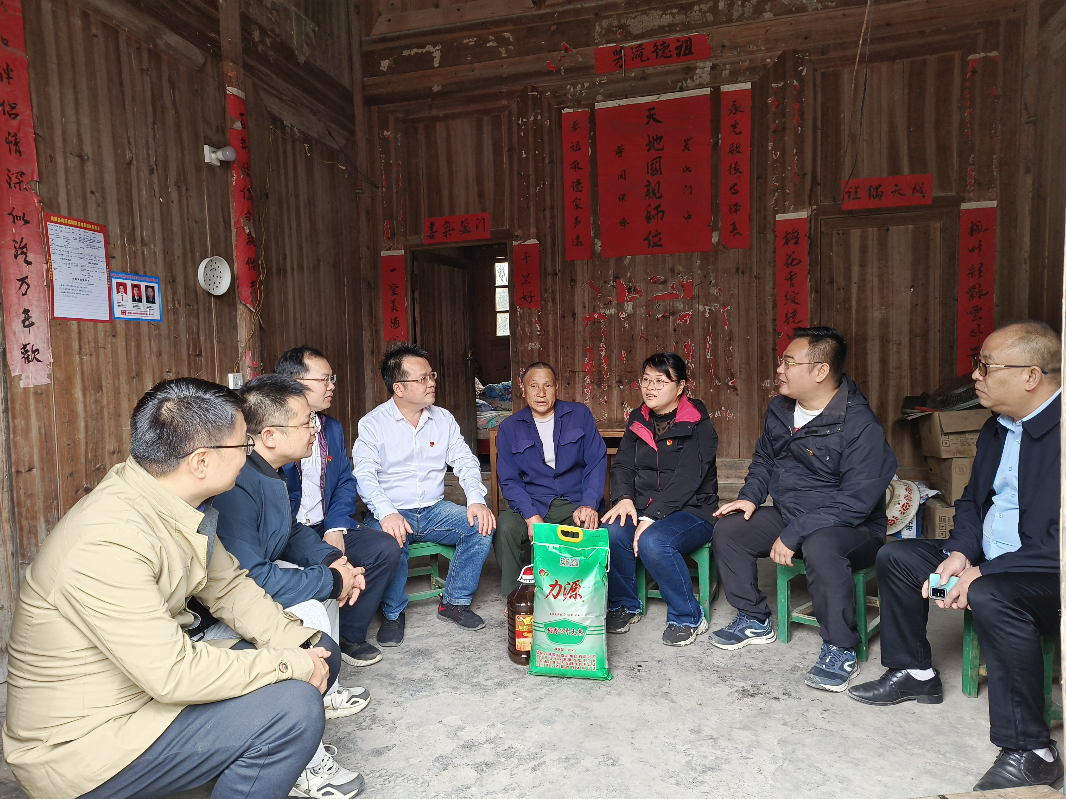 四个单位一行在学校派驻资源县金山村第一书记张鑫的陪同下走访慰问3户监测家庭,了解他们的详细情况,并向监测户捐赠了大米、食用油等生活用品。随后一行人实地考察罗汉果种植产业,深入了解金山村实施产业振兴发展情况。