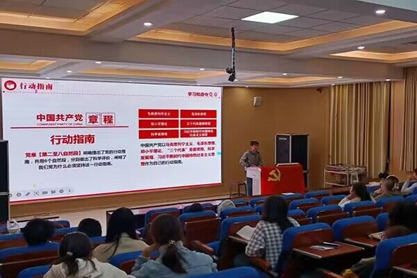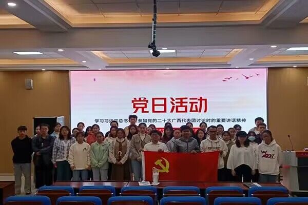为进一步学习贯彻党的二十大精神,加强党员同志的政治思想觉悟。2022年11月15日晚,胜游体育(SYsports)官方网站入口与技术学院本科生第三党支部在实验楼阶梯教室开展以“学习贯彻习近平总书记在参加党的二十大广西代表团讨论时的重要讲话精神”为主题以及“学习《中国共产党章程》”的党日活动。全体党员同志和本次发展对象代表共同参加本次活动。