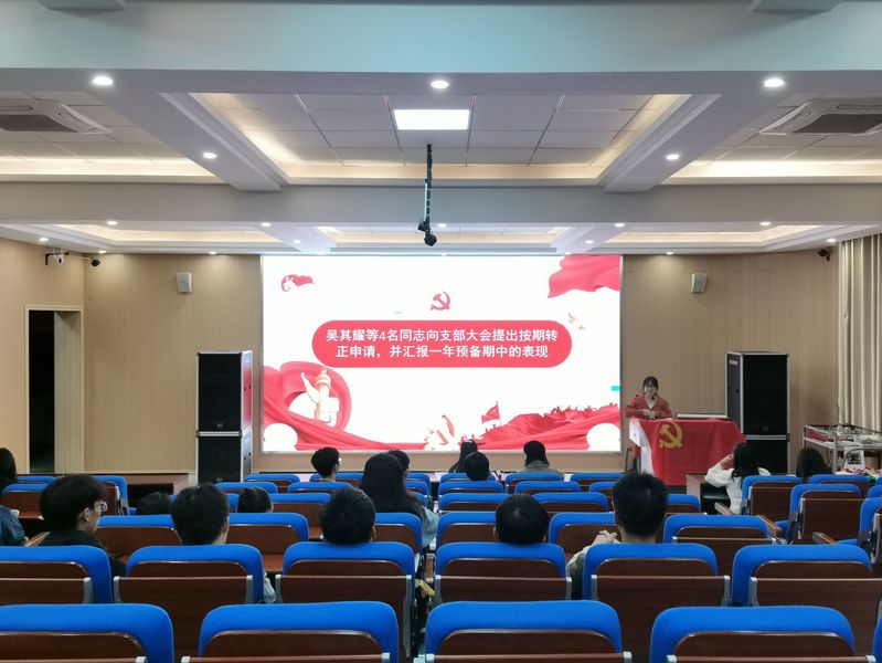 会议伊始,考察期已满一年的4名预备党员向支部大会提出转正申请,并依次汇报了一年预备期中的表现。紧接着,支部委员会代表依据该4名预备党员在预备期间的教育情况和考察情况进行一一介绍,并认为该4名预备党员同志均表现良好,能够积极参与党内活动,认真学习党的理论知识,提高自身思想觉悟,践行全心全意为人民服务的根本宗旨。经与会党员讨论并对该4名预备党员按期转正无意见发表后,会议以无记名的方式对该4名预备党员的转正进行投票表决。投票结果为:4名预备党员均以全票通过表决,转正成为正式党员。
