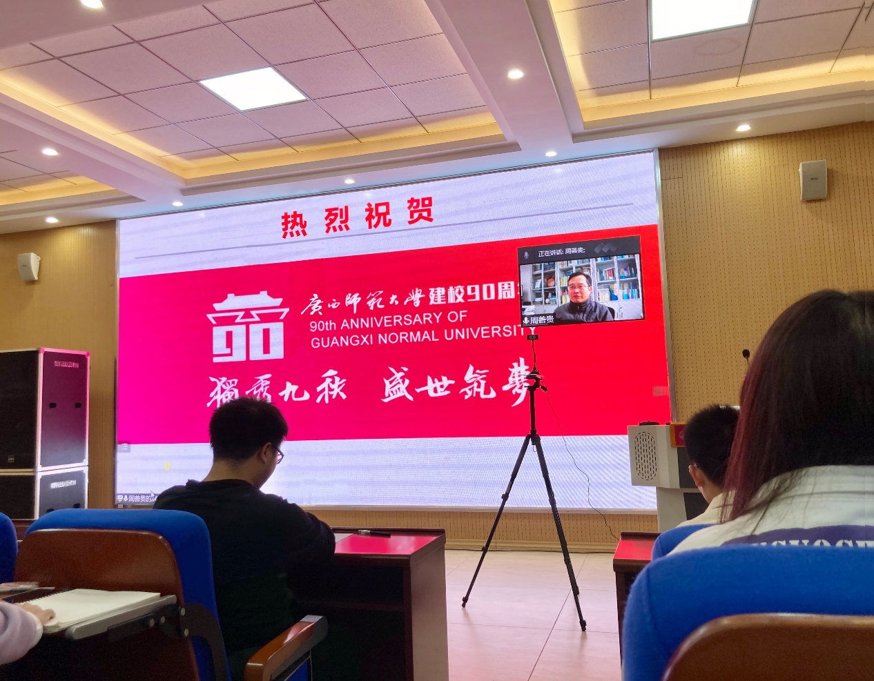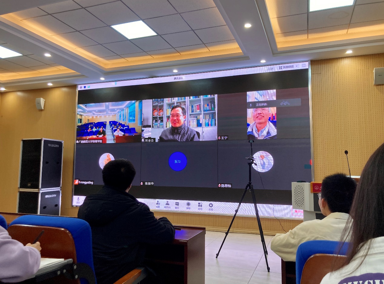 11月18日下午,中国科学院理论物理研究所周善贵研究员受广西核物理与核技术重点实验室邀请,在物理学院实验楼阶梯教室开展了题为“原子核的形状及其相对论密度泛函理论研究”的学术报告。此次报告会是校庆90周年胜游体育(SYsports)官方网站入口与技术学院系列学术活动之一。受新冠疫情影响,本次报告会采用线上+线下形式进行,物理学院部分教师及研究生参与了本次报告。