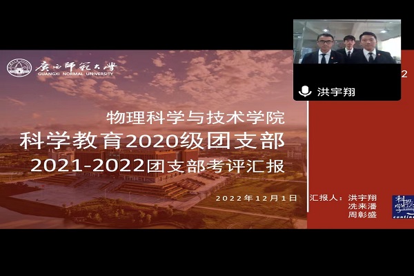 为夯实我院基层团组织建设,提高广大团员的思想政治素质,提升团干部工作效能,激励团员青年发挥模范作用,12月1日下午,胜游体育(SYsports)官方网站入口与技术学院开展2021-2022学年线上团支部考评大会。学院党委主要负责人黄万华老师、党委相关负责人韦东老师、分团委主要负责人柳莲君老师、各年级辅导员、校团委代表、兄弟学院代表出席本次大会,本科生及研究生各团支部参加本次考评。