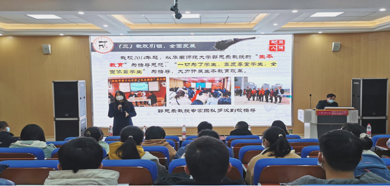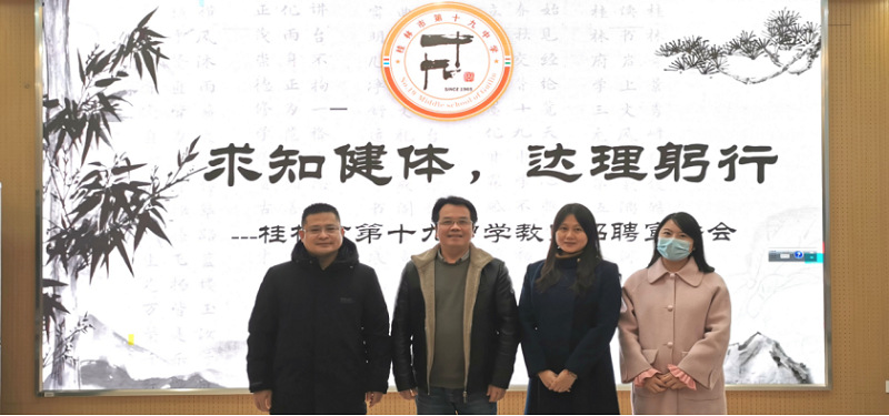 宣讲会上,桂林市第十九中学招聘负责人周主任播放了学校主题宣传视频,展示了学校的发展历程、学校文化、办学理念等方面的情况,让毕业生对于学校有了初步印象。桂林市第十九中学程校长就学校师资力量、物理学科发展、学校生源及学校发展前景做了具体介绍,表示欢迎有志于从事物理学科教学的优秀毕业生到学校任教任职,为学校注入新鲜血液。