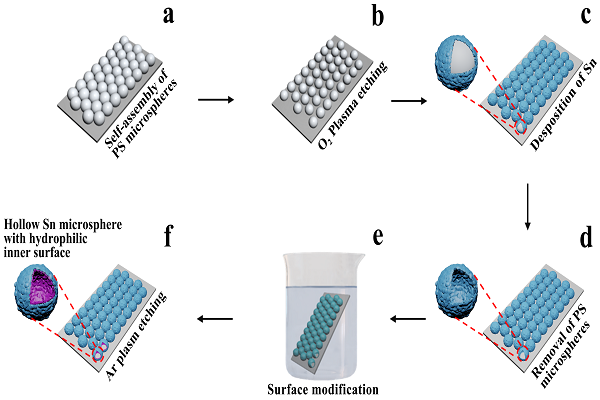 图1. 内表面亲水锡空心微球阵列制备示意图。