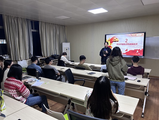 四是总结发言。与会老师强调了此次组织生活会暨民主评议大会的重要意义,并充分肯定了支部同志间感情的真挚,同时对党员同志们提出了几点要求。要强化理论学习,自觉进行理论学习,在原有的基础上提出更高标准,强调学习途径的丰富度和学习内容的多元化。在态度要求上,要坚定政治信仰,多读党领导人的理论文章和相关著作,将理念内化于心,外化于行。在支部建设上,要继续加强组织内部交流。