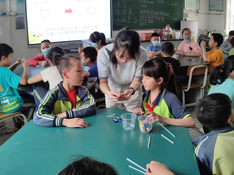 志愿者和学生一起实验