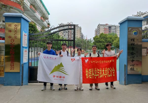 为了让广大同学积极主动承担社会责任,沉淀自己,提升自己,将理论运用于实践服务,奉献于社会,给孩子们带来生动有趣的物理知识提高孩子们的学习兴趣,2023年4月17日上午,广西师范大学青年志愿者协会物理分会云峰支教团队(以下简称云峰支教团队)携手前往桂林市七星区合心中心校开展新一期“科技走进课堂,智慧改造生活”周支教活动。