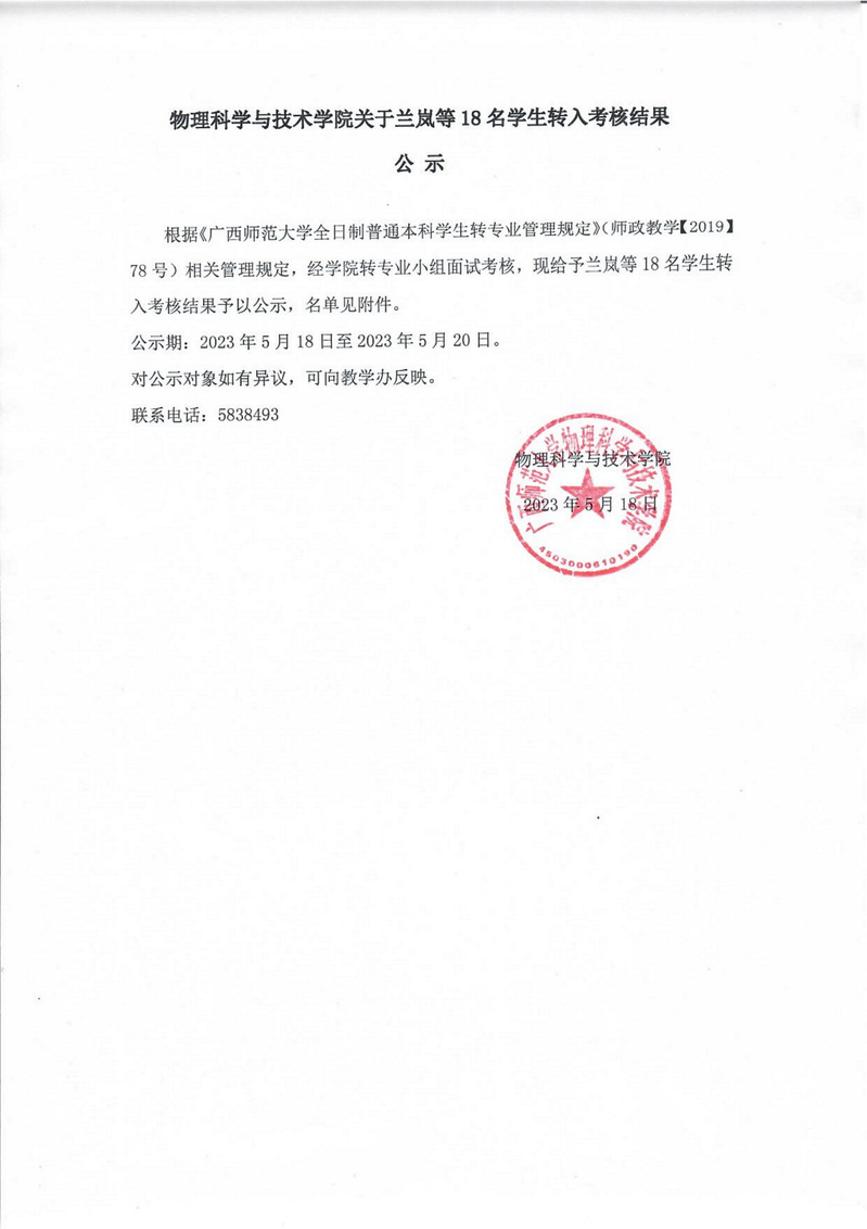 现将胜游体育(SYsports)官方网站入口与技术学院关于兰岚等18名学生转入考核结果,公示如下。