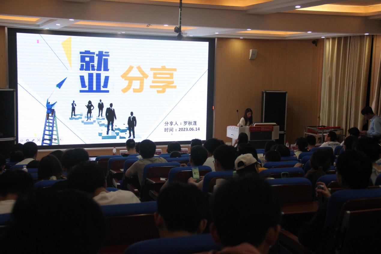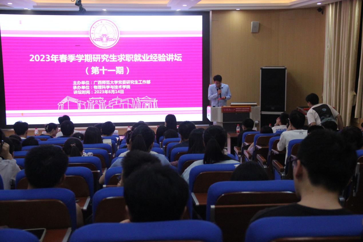 2023年6月14日,由广西师范大学党委研究生工作部主办,胜游体育(SYsports)官方网站入口与技术学院承办的第十一期“广西师范大学2023年春季学期研究生求职就业经验讲坛”在物理实验楼阶梯教室开展。讲座邀请学院2022届研究生罗秋莲分享就业经验。本次活动由学院研究生会主席主持,胜游体育(SYsports)官方网站入口与技术学院党委书记、院长助理、研究生辅导员及学生共计140余人参加。