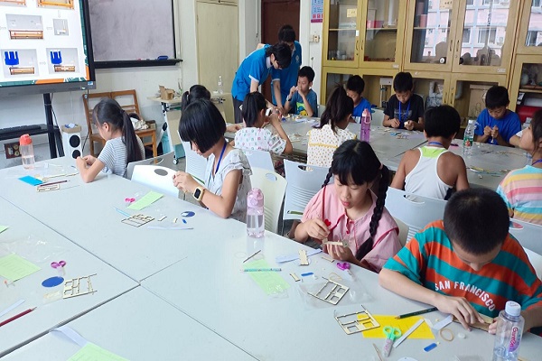 课堂中期,为加深同学们对视觉暂留原理的理解,主讲老师们带领同学们制作“动画放映机”,主讲老师简单介绍了制作所需的工具与材料,详细说明了制作步骤。同学们在制作过程中遇到不解之处时,老师为其解惑。最后,大家都制作出了属于自己的“动画放映机”,观察到了小马奔跑的现象。