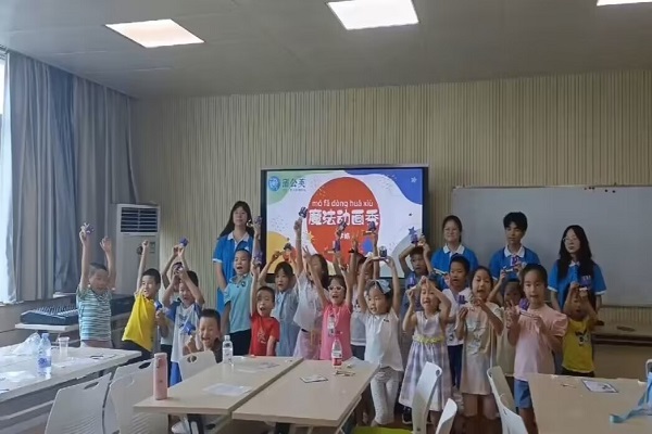 上午九点,课堂准时开始,一至六年级不同年龄段的小朋友分为三个班,由三位主讲老师同时进行“魔法动画秀”课堂的讲解。
