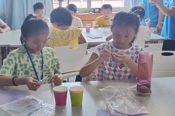 2023年7月22日由蒲公英科技·教育传播团队举办的暑期夏令营第6次课堂“小筒大声”在广西师范大学育才校区物理实验楼4楼如期开展。