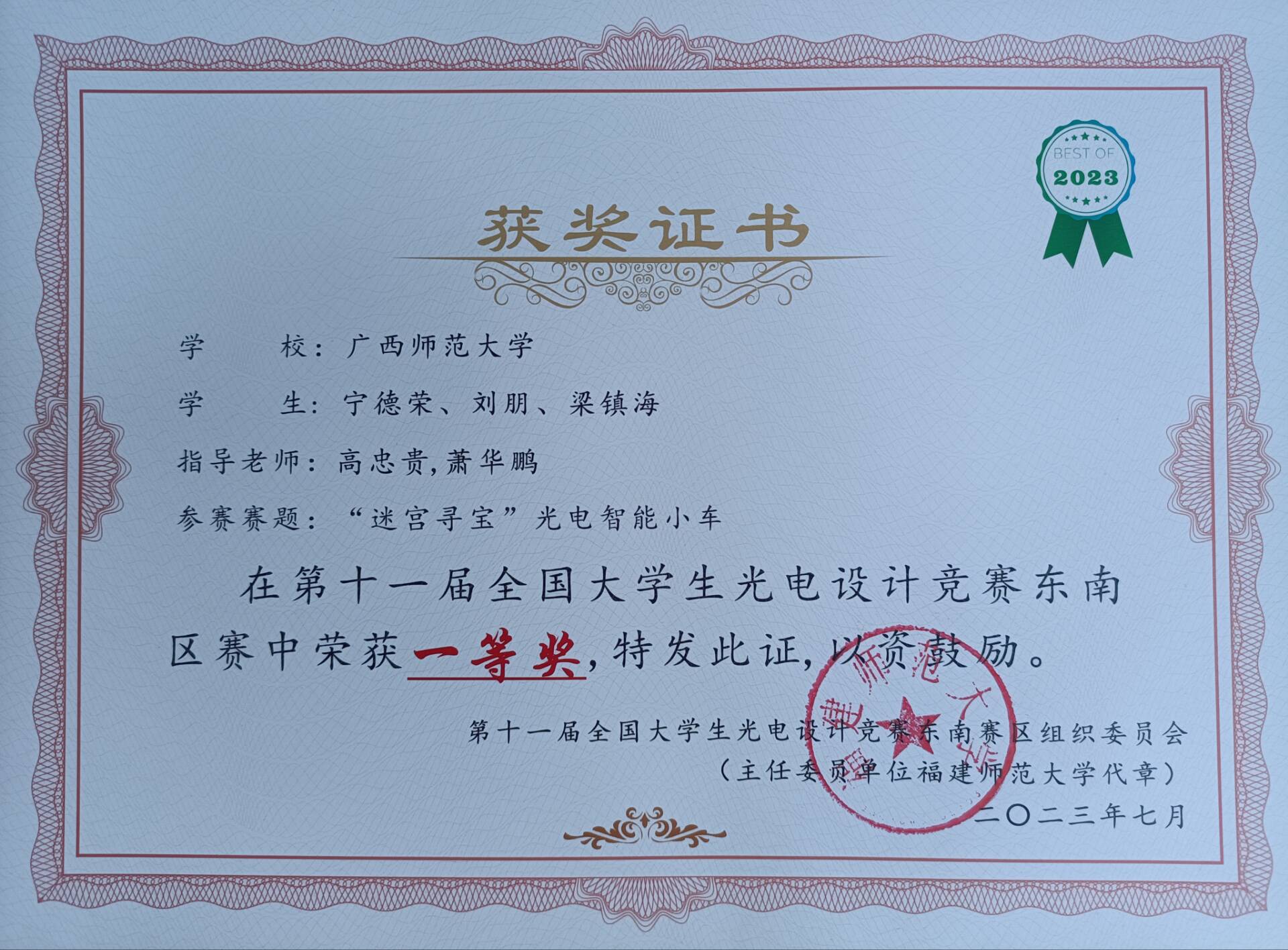 全国大学生光电设计竞赛是由中国光学学会和教育部高等学校电子信息类专业教学指导委员会联合主办,旨在促进光电知识普及,加强大学生实践、创新能力和团队精神的锻炼与培养。该赛事是教育部认可的44项全国大学生学科竞赛之一,是国内光电类级别最高、参赛队伍最多、影响最大的一项全国性赛事,被列入中国高等教育学会公布的全国普通高校大学生竞赛排名榜内竞赛项目名单。