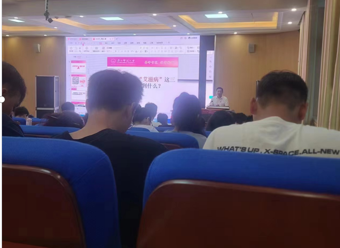 9月12日上午,学院邀请校医室蒋医生围绕新生入学健康问题开展了健康教育讲座。蒋医生从学生自身身心健康角度出发,向新生讲授了艾滋病的致病原理、发病状况、传播途径以及防治措施等知识,告诫同学们在生活中要自尊自爱,劝勉同学们要注重个人健康卫生,养成良好、文明、健康的生活习惯。