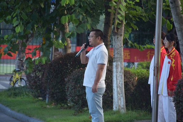 早晨万里晴空,骄阳正好,学院党委副书记韦东老师给在场同学们讲话。在讲话中他提到新学期新气象,我们迎来了百余位2023级本科生以及研究生新生,未来可期。他希望我们珍惜奋斗的机会,珍惜学习的时间,做一个上进博学、有所收获的新时代大学生!