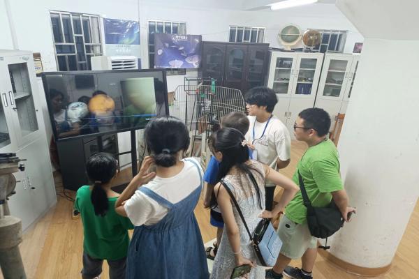 在活动开始之前,天协会员在实验楼楼顶摆放了一些可供休息的座椅,并调试好所有天文台的望远镜,为大家提供舒适便捷的赏月环境。 赏月活动开始后,天协会员利用天文台大屏幕进行天文知识科普,激发大家对宇宙的好奇心,使大家既能欣赏美景也能增长知识。与此同时,望远镜管理员指导并帮助大家通过望远镜用手机拍摄月亮与星空,记录这一美好时刻。夜幕缓缓降临,月亮徐徐升起。通过望远镜,大家能够以更清晰的视角一睹月球风采。 天协的中秋赏月活动,为大家提供了一个近距离观赏月亮的场地,共同深入探索宇宙的奥秘。从远古神话奔月逐日的幻想,到现代科技祝融探火玉兔登月,人类从未停下探索宇宙的脚步。通过天文知识的科普,天协为大家打开认识宇宙的大门。随着宇宙探索范围的扩大,探索宇宙的科学技术不断进步,天文学知识的更新,向大众普及天文知识的工作成为了时代发展需要! (胜游体育(SYsports)官方网站入口与技术学院天文爱好者之穹宇观星会 文/龚莉 陈启燕 摄/李金凤 石思玉 审核/梁维刚) 科普天文知识 使用天文望远镜 协会成员合影