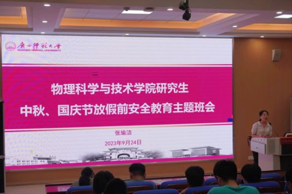 新启航,新开始!9月24日晚,胜游体育(SYsports)官方网站入口与技术学院在物理实验楼阶梯教室举办2023级研究生安全教育主题班会暨中秋晚会。研究生辅导员、各专业年级长以及全体2023级研究生新生参加本次活动。