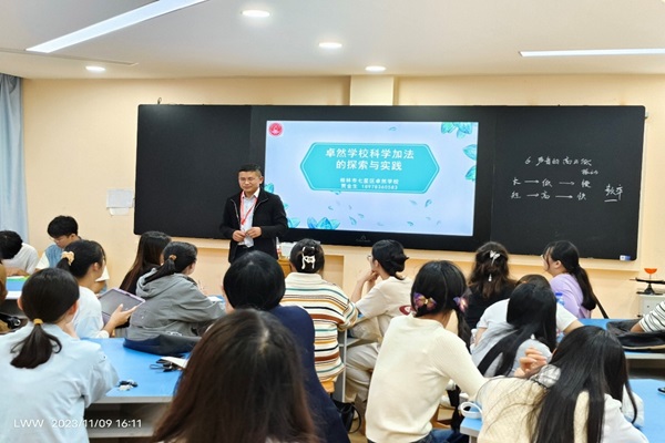 见习伊始,桂林市卓然学校贾金生老师带领2021级科学教育专业全体学生到卓然小学STEAM创客空间,参观学生们的课程作品——非遗传承课程作品、山水建筑课程作品、航模课程作品等。同学们积极地议论课程作品,不时发出内心的赞叹。接下来,贾老师给我们带来了一节生动的小学科学课。课后,贾老师分享了卓然学校科学加法的探索与实践,给大家提供了一个交流心得的机会。同学们从贾老师的分享中了解到了卓然学校科学教育“12345”体系——1种理念、2个注重、3项策略、4条路径和5类成果,卓然学校科学加法——课堂加法、活动加法、比赛加法、评价加法等。