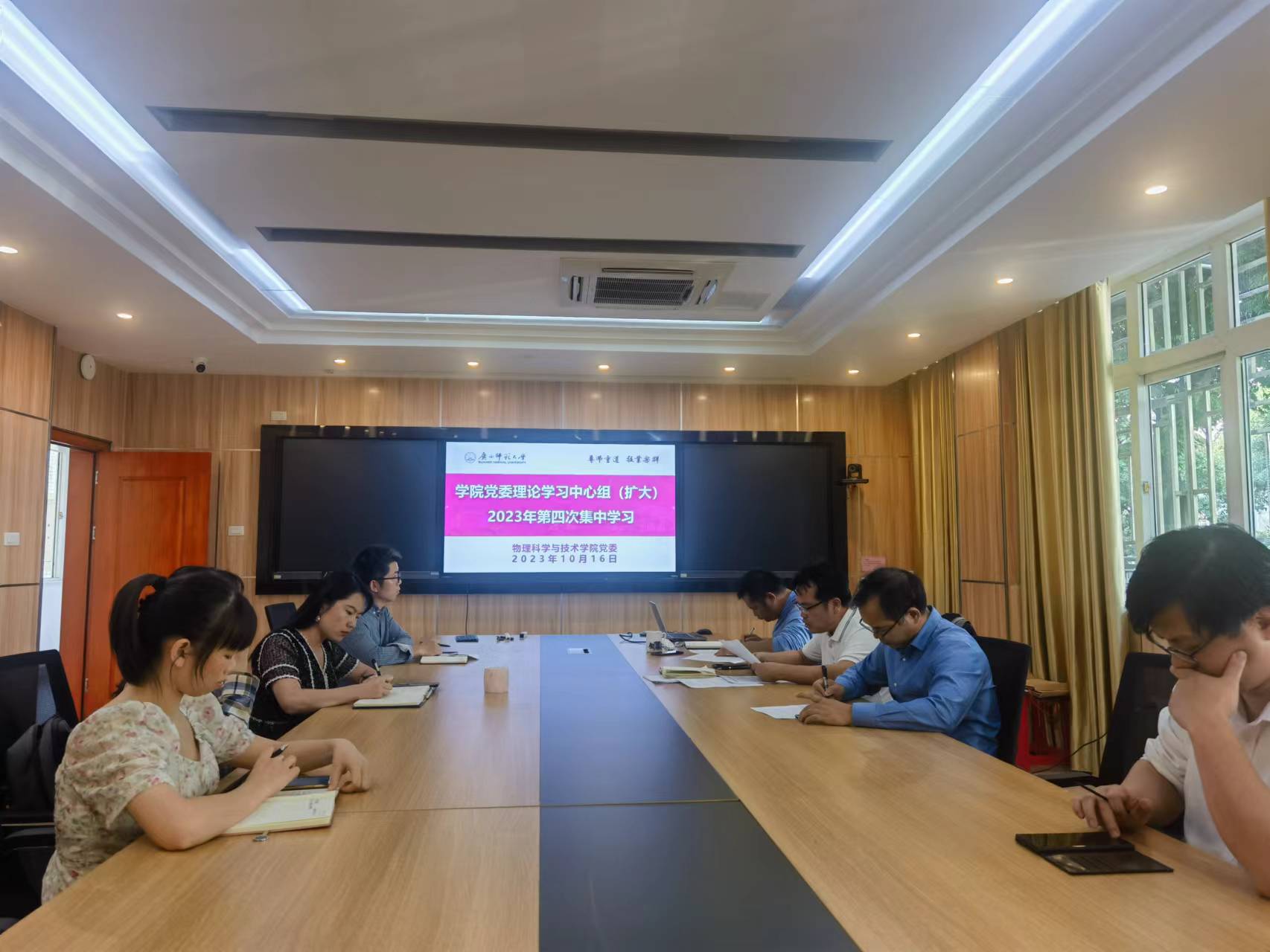 10月16日,胜游体育(SYsports)官方网站入口与技术学院在育才校区物理办公楼105会议室开展党委理论中心组(扩大)2023年度第四次集中学习会议。学院党政领导班子、党委委员、纪委委员、各党支部书记参加会议。会议由学院党委负责人主持。