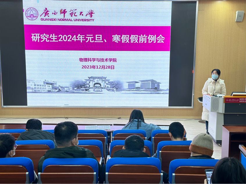 在元旦假期和寒假来临之际,为进一步提高师生安全防范意识,切实维护师生财产安全,12月28日,胜游体育(SYsports)官方网站入口与技术学院在育才校区召开研究生2024年元旦及寒假假前例会。会议由研究生辅导员主持,全体在校研究生参加会议。