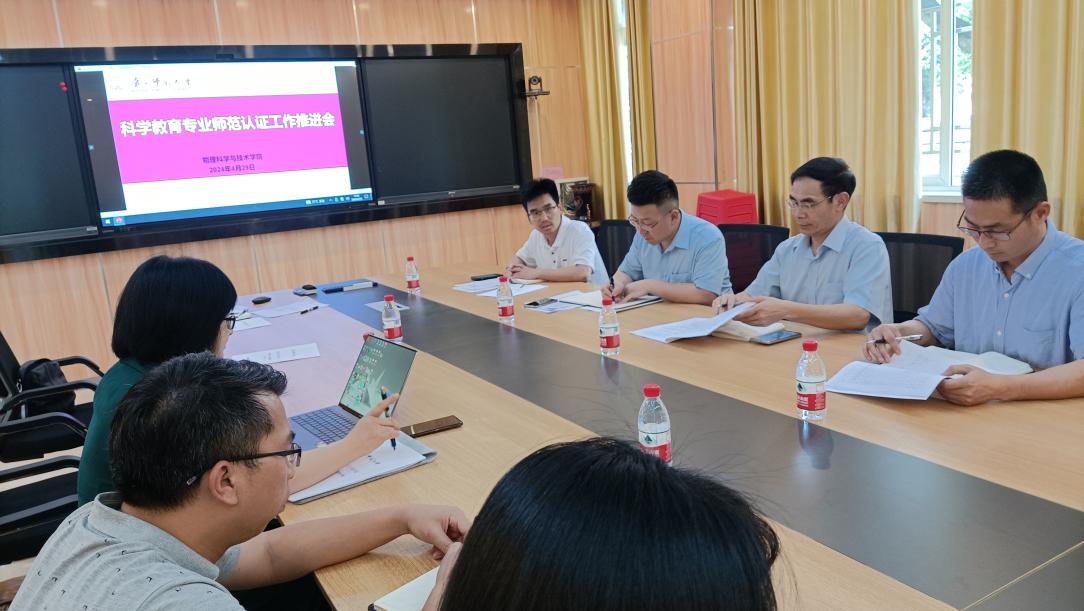 继我院物理学专业通过师范类专业第二级认证之后,科学教育专业将进行师范认证工作。为扎实做好该项工作,全面保障和提升科学教育专业人才培养质量,加强该专业的内涵建设,强化国家一流专业建设点的示范作用,4月29日,学院邀请我校教务处副处长蒲智勇莅临我院指导相关工作,学院领导班子成员,科学教育专业教师参加,会议由副院长廖广睿主持。