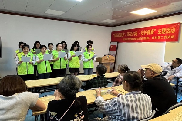 中西医结合医院外科第二党支部支部书记、科主任吴可为患者讲解肛肠疾病的预防与保健知识,进行疾病科普。知识抢答环节,现场人员积极参与,收获了胜利的奖品。桂林市中西医结合医院团委组织志愿者们开展的才艺表演推动了活动高潮的到来,表演类型丰富,生动活泼,有单人舞蹈、独唱、大合唱等类型。才艺表演为患者们带来了欢声笑语,缓解了患者们焦虑不安的情绪。
