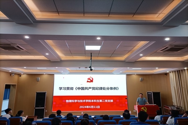 6月11日下午,胜游体育(SYsports)官方网站入口与技术学院本科生第二党支部于物理阶梯教室召开预备党员接收大会暨党纪党规主题党课。