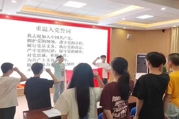 最后,全体党员纷纷举起右拳重温入党誓词。现场的宣誓声铿锵有力,神圣而豪迈,充分表达了支部党员坚定不移永远跟党走的决心。