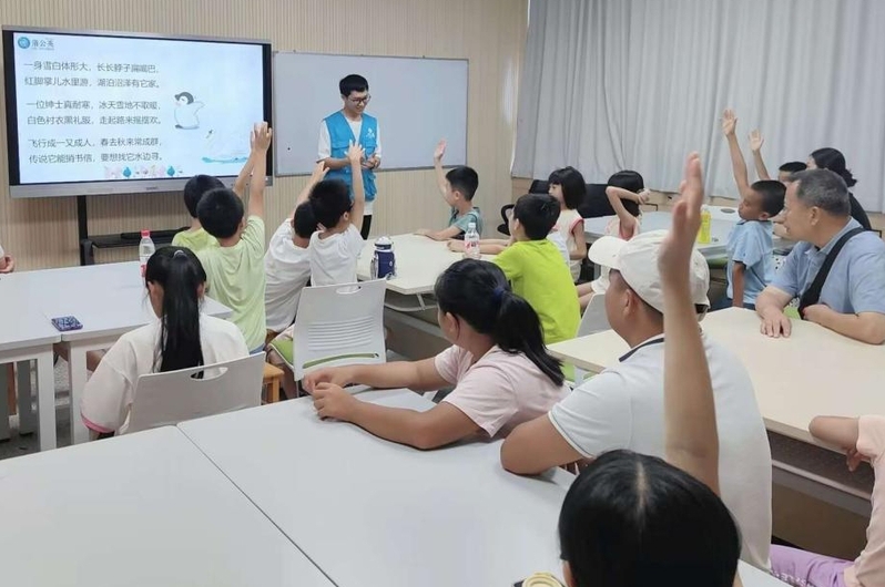 课堂上,参营学生通过猜谜语的小游戏认识了很多益鸟。在主讲老师生动的讲解中,参营学生不仅理解了推力与阻力,还掌握了牛顿第三定律——作用力与反作用力。