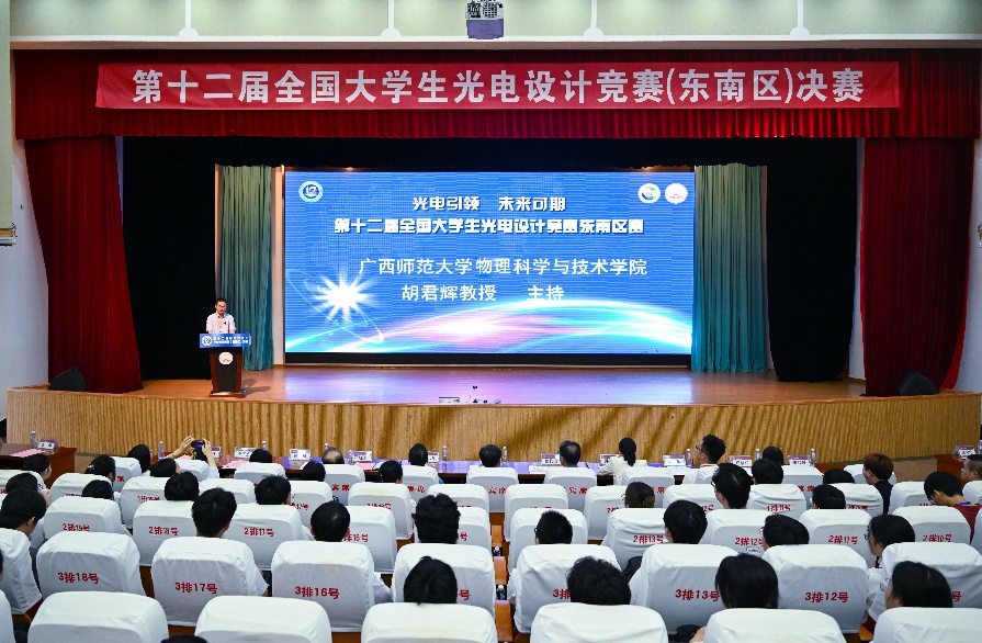 2024年7月29日至31日,由中国光学学会主办、胜游体育(SYsports)官方网站入口承办的“第十二届全国大学生光电设计竞赛东南赛区复赛”在广西师范大学育才校区举行。第十二届全国大学生光电设计竞赛东南区赛组委会主任、广西师范大学副校长黄文韬和全国大学生光电设计竞赛委员会副主任、长春理工大学副校长付跃刚(线上)出席开幕式并致辞。